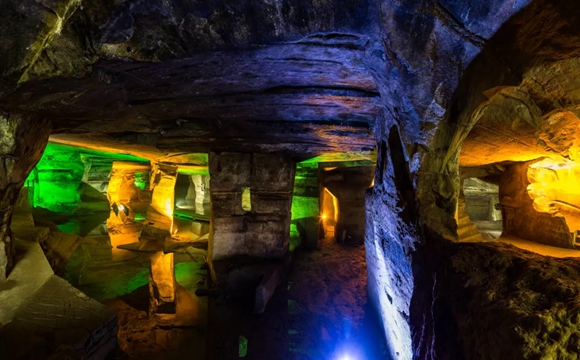 花山謎窟景區位于黃山市區,距離黃山風景區約55公里。它并非天然而生的溶洞,而是古代人為開鑿的怪異洞窟,石窟巖壁上當年的鑿痕印跡至今依然清晰如初。石窟群洞內空間奇大,結構怪異,有的層層迭宕,洞中套洞;有的石柱擎天,奇幻神秘;有的水波蕩漾,迂回通幽。而且洞中無壁畫、無佛像、無文字,因此成為千古之謎。