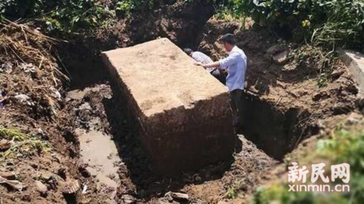 張君文介紹,這具位于奉賢莊行鎮南莊路穗輪1組排河的河道西端的石棺,據清代光緒年間的《重修奉賢縣志》記載,屬于前蜀丞相潘葛之妻李氏之墓,石棺刻有“天漢四年葬”字樣,而在今天的碑拓中,發現石碑除“天漢四年葬”幾字外,還有“造”字纂刻印記,系這一次的新發現。
