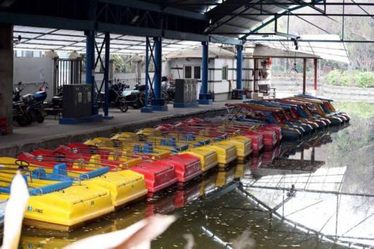 公園水位偏低,淤泥沉積,游船沒(méi)有開(kāi)放。
