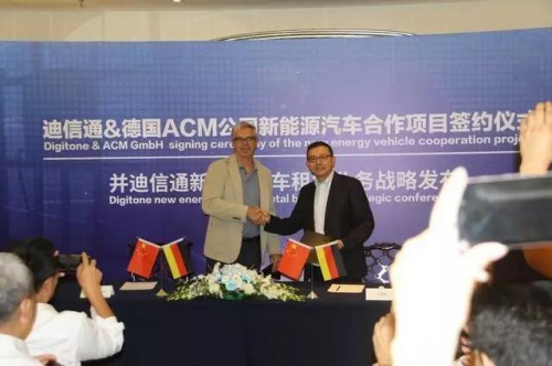 2017年8月份,迪信通與德國ACM(Adaptive City Mobility)簽署戰略合作協議。據劉東海先生介紹,作為當時的熱點新興產業,迪信通集團在大力發展原有數碼產業的基礎上,對新能源乘用車全產業鏈的探索,不僅是集團多元化發展的重要組成部分,同時也是對現有汽車銷售模式的大膽突破,更是企業在順應市場趨勢變化之下的必然選擇。迪信通與德國ACM公司合作下的新型經營模式不僅為汽車市場帶來了光亮,也為整個汽車流通領域打開了新的格局。