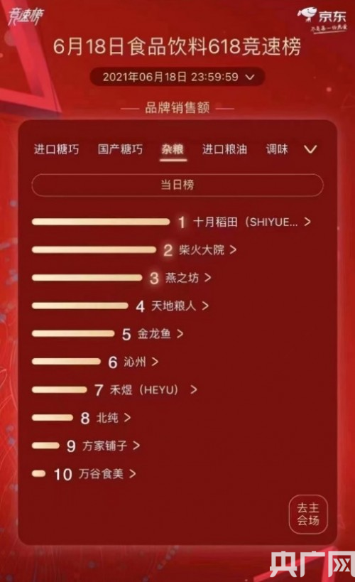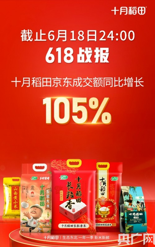 央廣網(wǎng)北京6月22日消息(記者 陳祥銳 通訊員 羅云)“6·18”電商大促期間,十月稻田再創(chuàng)佳績。截至6月18日24:00,十月稻田在京東成交額同比增長105%,牢牢占據(jù)京東糧油榜和京東雜糧榜第一名。6月18日,十月稻田在天貓超市僅半小時便趕超去年全天銷量。 截至6月20日,十月稻田旗艦店位居天貓“6·18”熱度榜第一名。