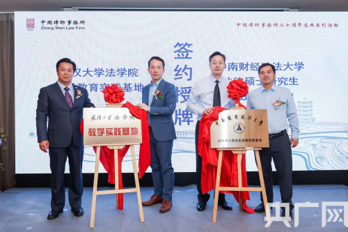 當天,武漢大學法學院法學教育實踐基地、中南財經政法大學法律碩士研究生實踐創新基地同時簽約授牌落戶中聞律師事務所,校所雙方將在人才聯合培養、教育教學等領域開展合作。與會專家學者還圍繞加強長江經濟帶不良資產法律服務、促進長江經濟帶高質量發展展開探討。