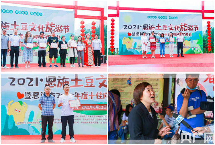 央廣網北京6月16日消息(記者 阮修星 通訊員 劉洋) 聚電商之力,促鄉村振興。近日,恩施土豆文化旅游節暨2020年度恩施市首屆十佳網商頒獎儀式在梭布埡石林景區舉辦。現場數十位本土帶貨主播實操培訓、數百名網紅現場直播帶貨、數千人次“土豆宴”沖擊最大規模土豆餅吉尼斯世界記錄,直播觀看量近億人次。