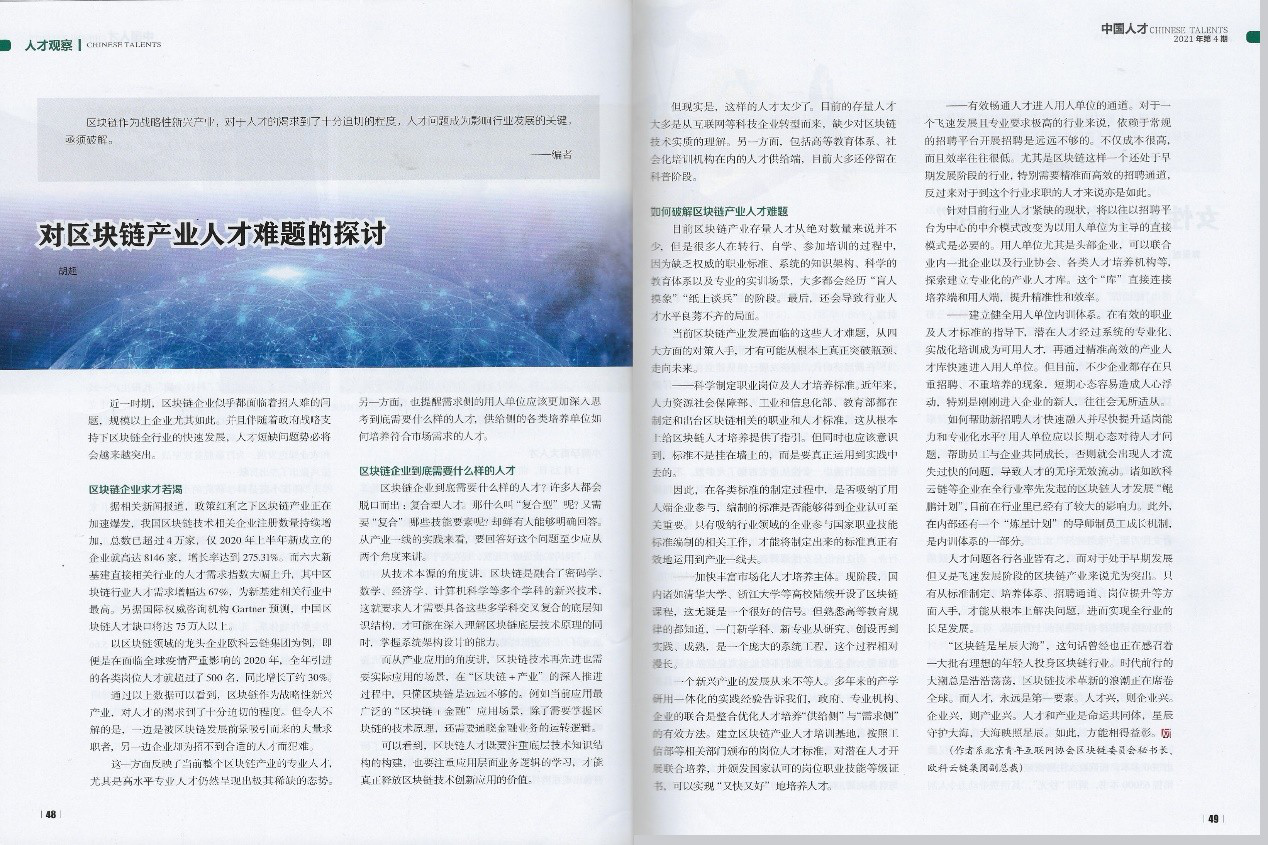 該文的“編者按”寫道,“區塊鏈作為戰略性新興產業,對人才的渴求到了十分迫切的程度。人才問題成為影響行業發展的關鍵,亟待破解。”公開查詢顯示,這是首次有高層決策部門主辦的核心刊物發文關注區塊鏈產業人才問題。