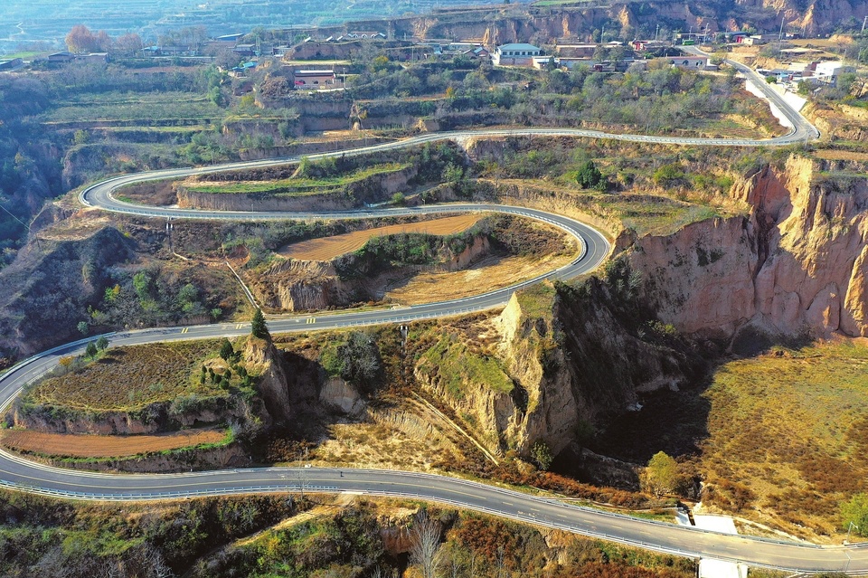 從高空俯視,山西平陸縣圣人澗鎮太寬至南呂的鄉村公路似一條“玉帶”在山間蜿蜒,與錯落有致的梯田、民居相映成景。近年來,該縣持續推進山區“四好農村路”建設,一條條通村暢鄉的瀝青路、水泥路成為民生路、產業路、致富路。(郝健 攝)
