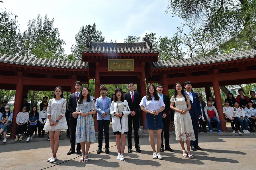 • 山西農業大學詩詞朗誦會的領讀者在帶領同學們一起朗誦詩詞。    “五四”青年節來臨之際,一場以“激揚青春 筑夢未來”為主題的詩詞朗誦會在位于山西省太谷縣的山西農業大學舉辦。
