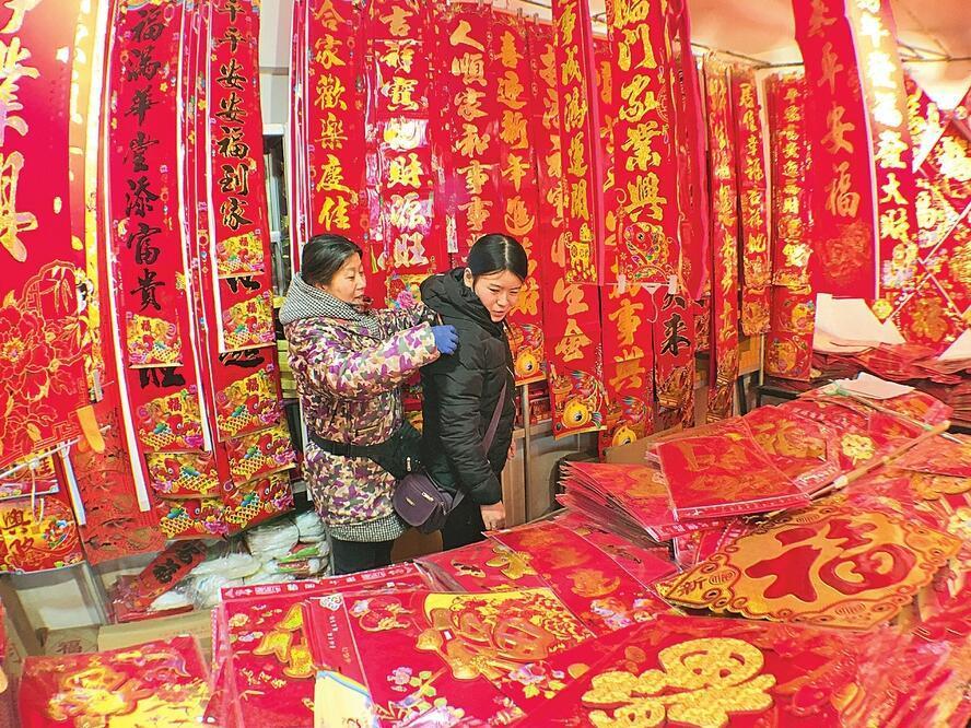 2月1日,太原一小商品市場內,市民正在挑選春聯。隨著春節臨近,太原市節日氣氛日益濃厚,充滿傳統年味的節慶用品成為人們購物的首選。