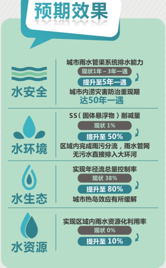小寨區域海綿城市建設項目建設按照“滲、滯、蓄、凈、用、排”的方針,通過低影響開發理念(LID)海綿化改造、排水管網提標、雨污分流改造和超標雨水蓄排設施等建設,增強城市防澇能力,改善水環境,修復水生態,利用水資源。