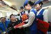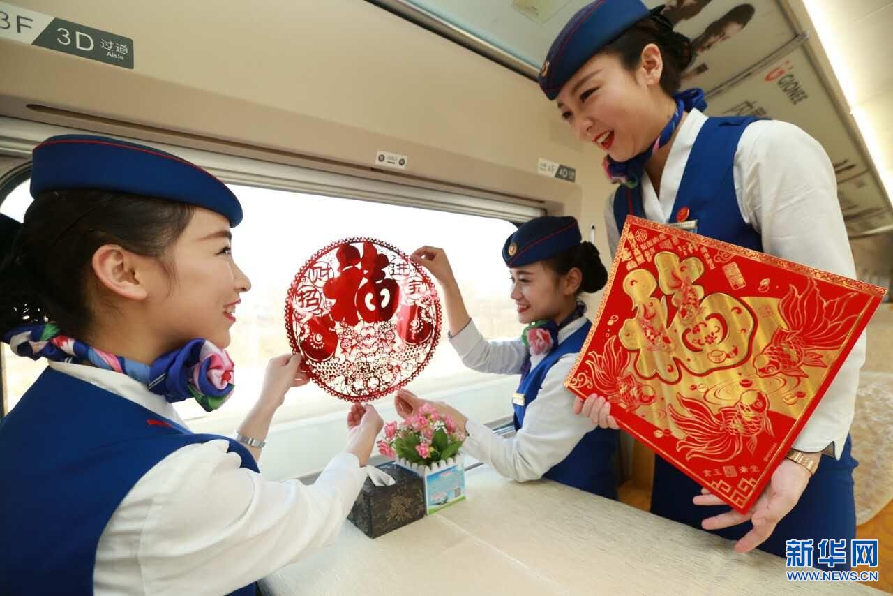 1月12日,春運前一天,西安客運段的乘務員們為了給車廂營造出暖暖的年味兒,購買了窗花、對聯、福字等節日喜慶物品裝飾車廂,讓春運期間回家過年的旅客一邁進車廂便能感受到濃郁的年味氣息。同時,他們還組織開展了“迎新春、送福字”活動,讓旅客帶福回家,與家人共度新春佳節。(通訊員 王曙天)
