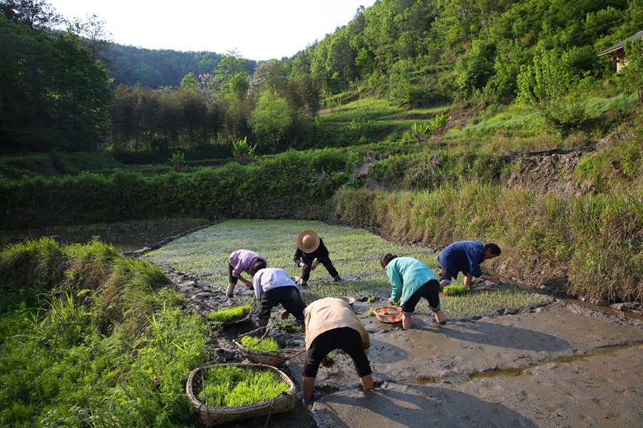 西部網(wǎng)訊(記者 魏永賢)春耕季節(jié),石泉縣中池鎮(zhèn)老灣村,6名老人在古梯田里育秧,小小的梯田里老人們幾乎是緊挨著,他們要將小小的秧苗一根根插在水田里。