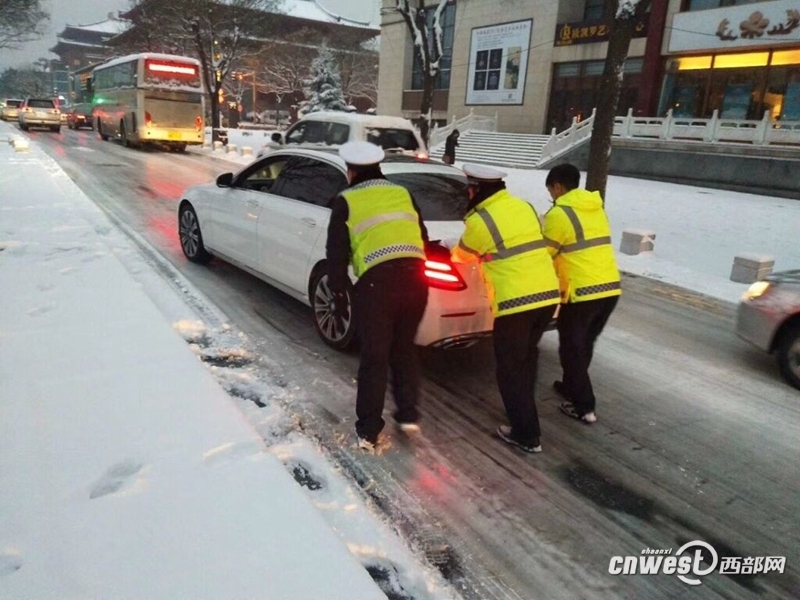 降雪致西安大部分城市道路結冰,多路段實施交通管制。
