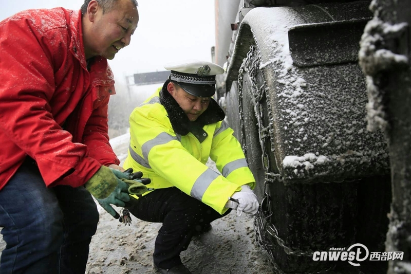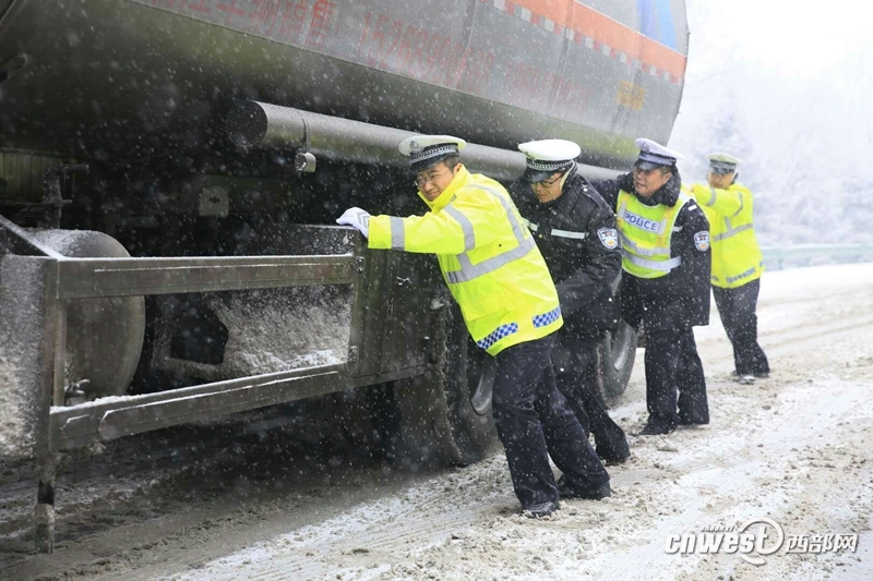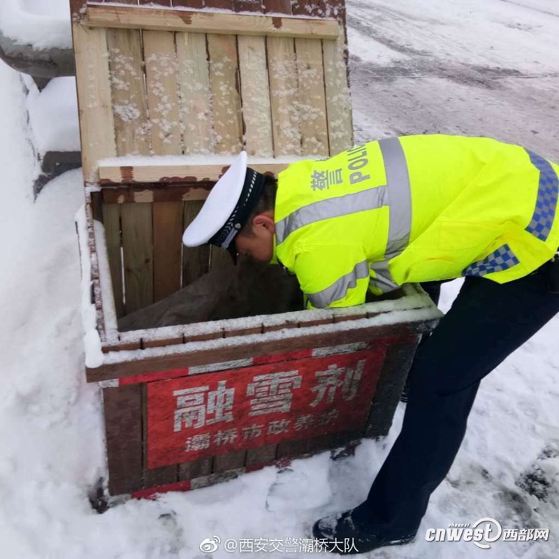 降雪致西安大部分城市道路結冰,多路段實施交通管制。 -