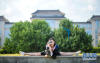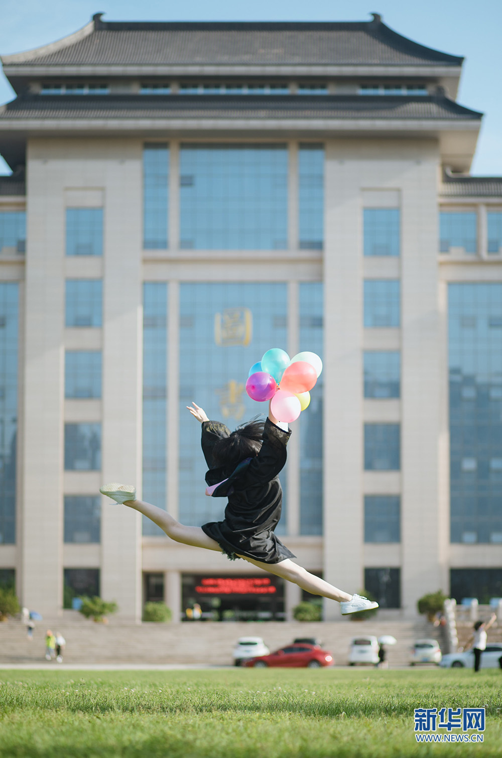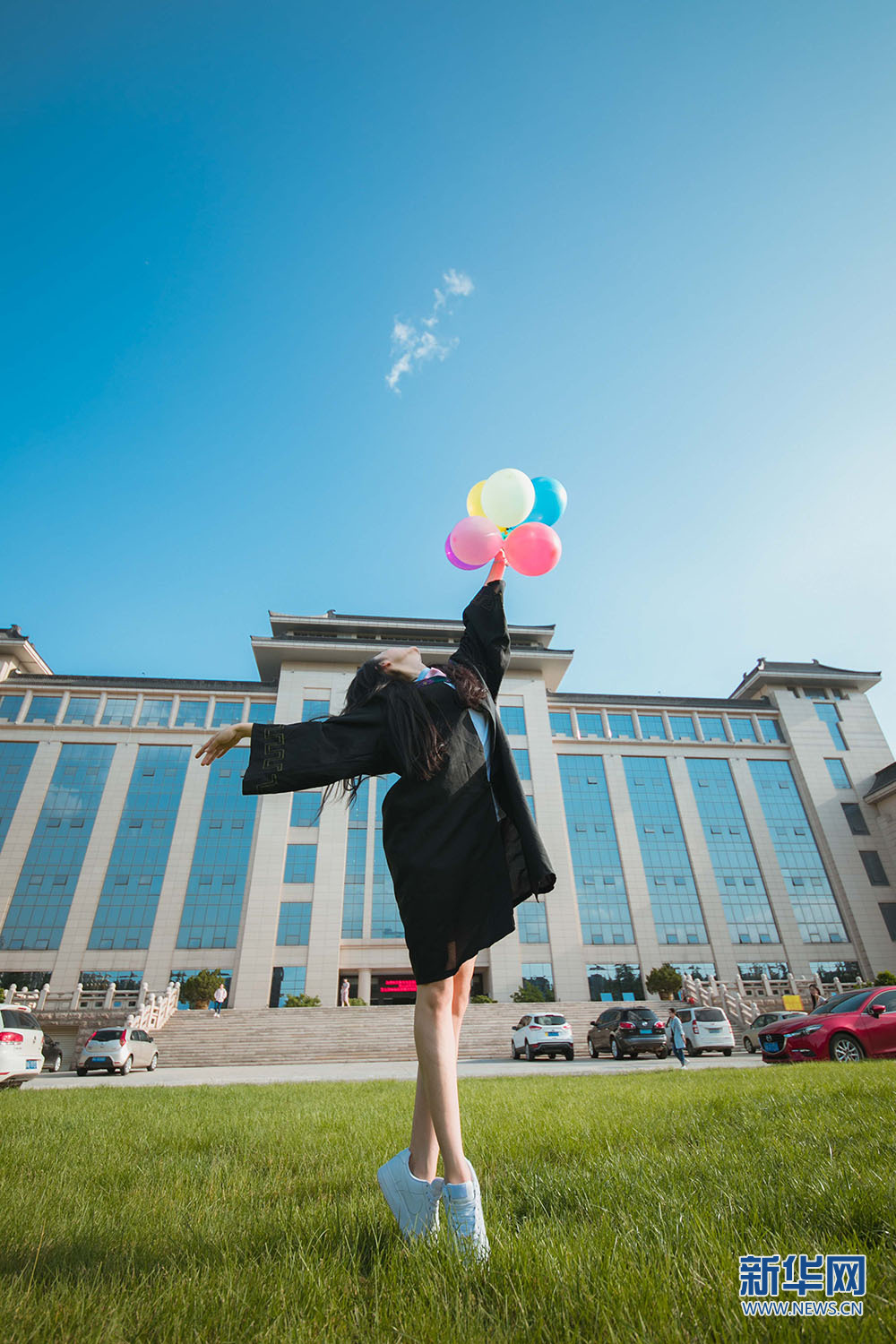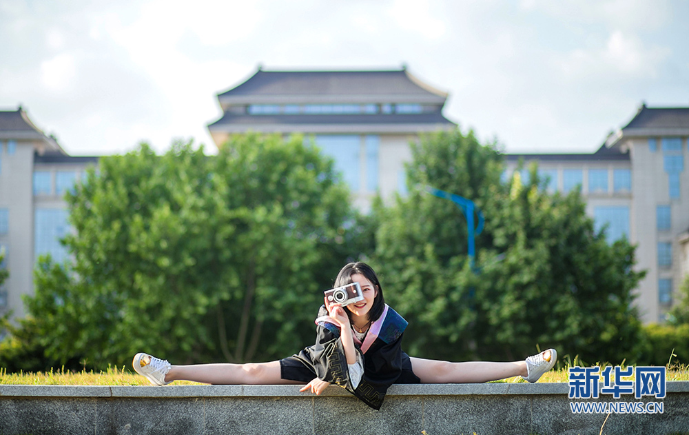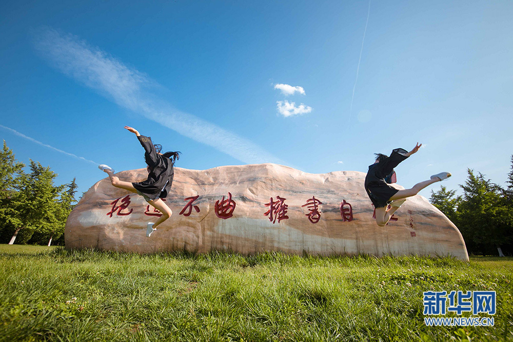 畢業生用獨特的姿態與校園合影。新華網發 楊思宇攝