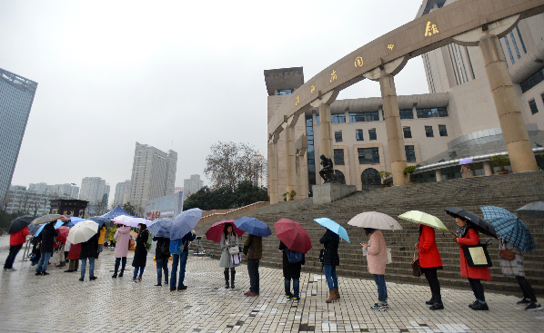 圖為降溫和雨水也難掩大家朗讀的熱情,一大早等待進入朗讀亭的市民就排起了長隊。記者楊力攝