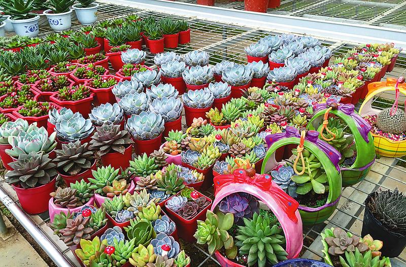 記者在啞柏苗木花卉交易大廳看到,除了早先設立的大苗、小苗交易區,現在還新增了盆景花卉區、景觀區、無土繁育區和新品種展示區等!耙郧叭宥挤N植白皮松、華山松、樟子松等,效益好大家都一擁而上,結果市場飽和了。后來我發現多肉盆景市場好,就改過來培育多肉植物了,還挺暢銷的!眮碜愿蝗舒偟睦钆扛嬖V記者。在李女士的展位前,前來購買的市民還真不少。針對目前市場對室內綠化、節慶綠化、城市陽臺綠化、屋頂綠化需求大增,周至縣產業導向正在從單一苗木擴展到花卉栽植和經營。