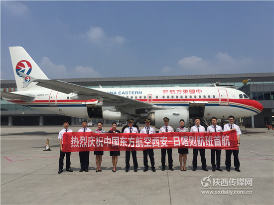 首航航班西安-日喀則航段由適宜高原飛行的空客A319飛機執行。執行首航任務的東航西北分公司機組、乘務組在西安咸陽國際機場合影留念,為上海-西安-日喀則航線首航成功獻上祝福 。