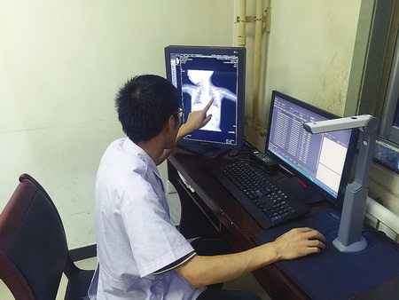 蓮湖區桃園社區衛生服務中心的工作人員正在操作信息共享平臺。