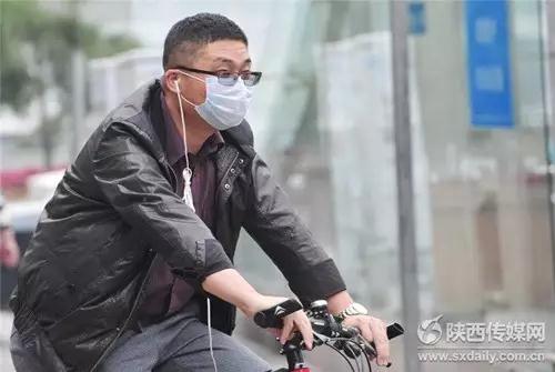 ◎霧霾天氣,市民戴口罩騎車出行,圖片來源于陜西傳媒網(wǎng)