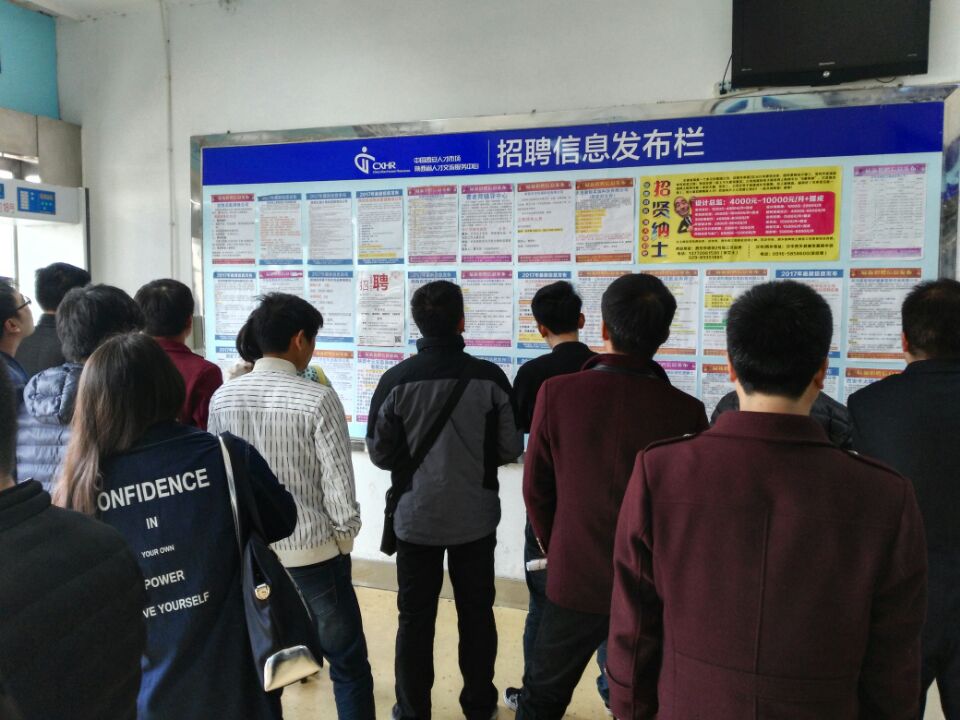 3月19日,求職者在陜西省體育場瀏覽招聘信息。(圖片來自大秦之聲)