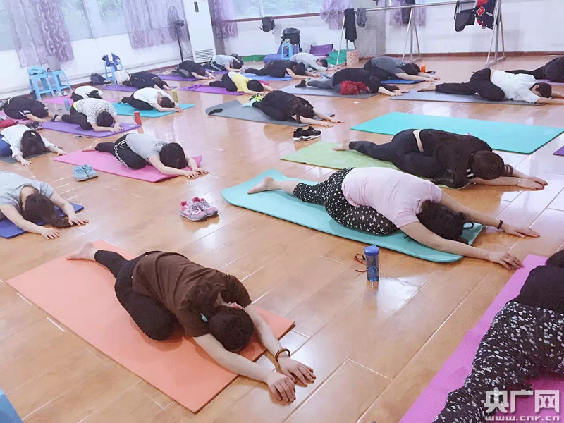 健身房內學員跟隨老師在進行瑜伽課程 圖片來自大秦之聲