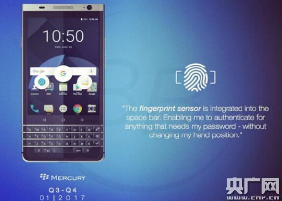 黑莓粉絲或許早已聽聞將有一款黑莓設備問世,代號為“Mercury”。今年的CES上我們看到了原型產品,具體配置仍然未知。TCL通信總裁史蒂夫·西斯圖里(Steve Cistulli)展示了正在開發(fā)的產品,強調說手機具備三大特點:安裝QWERTY物理鍵盤,它可以作為觸摸墊使用;空格鍵中安裝了指紋傳感器;搭載黑莓粉絲喜歡的操作系統(tǒng)。