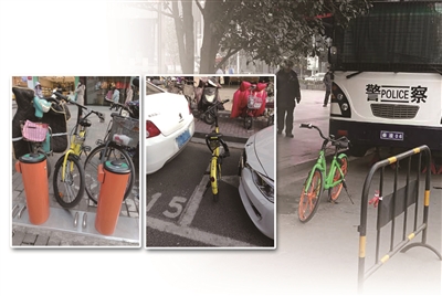 “共享單車”在新街口違停問題最突出有的甚至占了公共自行車樁