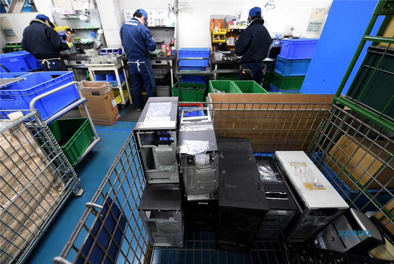 當地時間2017年1月19日,日本東京,東京廢品回收公司。隨著經濟的發展,人們收入水平的提高,電子產品消費數量驟增,亞洲地區的電子垃圾問題日益嚴重,影響著生態環境和人們的健康。