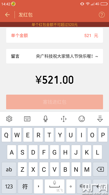 二、微信紅包額度已提至520元、黃金紅包可發送“1314”毫克
