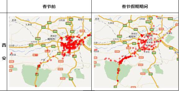 由上圖中偽基站活躍對比圖可知,春節(jié)期間偽基站短信分布重心,由城市的中心街道轉(zhuǎn)移到城市周邊的高速公路了,估計是騙子預(yù)測到春運期間高速公路上是人流最密集的區(qū)域。由此可見,春節(jié)期間偽基站不僅活躍城市發(fā)生了變化,在同一個城市的工作區(qū)域同樣發(fā)生了變化。