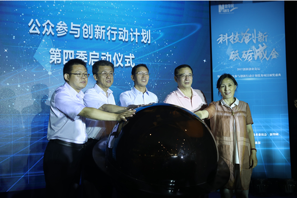 北京市科委副主任伍建民(中)等嘉賓啟動公眾參與創新行動計劃第四季活動 圖來自新華網