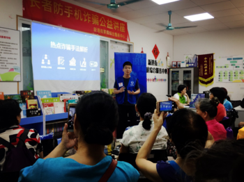 (圖:活動現場,志愿者向老年人講解熱點詐騙手法,提高其防騙意識)