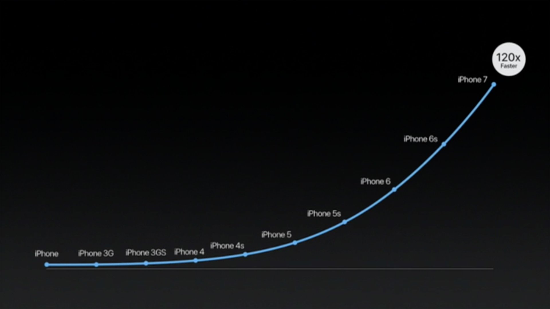 下圖為蘋果在2016年推出iPhone 7時的性能測試圖:
