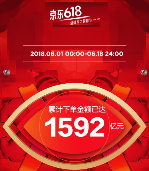 央廣網科技6月19日消息 從2018年6月1日0點到6月18日24點,京東全球年中購物節累計下單金額達1592億元,其中出庫訂單金額同比增長超過37%。隨著京東物流自動化設備大面積應用,618期間,90%以上自營訂單實現當日達或次日達。