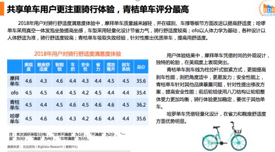 報告插圖:共享單車用戶更注重騎行體驗,青桔單車評分最高