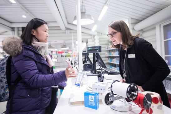 圖說:中國游客在芬蘭商店使用支付寶付款