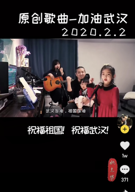 “你是這個冬天揮之不去的字眼,你有一個可愛的名字叫武漢。是誰讓你丟失了往日的笑臉,是誰讓你難過了一整個冬天。我們一起手牽手一起去擁抱明天......”音樂人姚志華(快手號:liuxianwx)一家四口齊上陣,演唱其新創作的歌曲《加油武漢》。歌詞樸實無華,很多網友留言,為武漢“加油”打氣。
