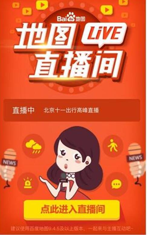 出行高峰時段,百度地圖聯合江蘇省、四川省、河南省,北京、重慶、海口、武漢等12家交通管理和交通運輸部門,攜手打通交通事件及時響應,開通實時直播間播報,從路況方向、出行方向、車主關愛方向和景區推薦等方面,為用戶提供路況、景點人流等交通信息。據統計,今年國慶黃金周共有超過90萬人涌入路況直播間獲取出行信息,為廣大用戶的出行提供了最具價值的參考。