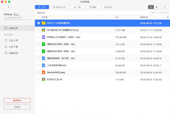此外,為了防止資料遺失,我還將近期拍攝的作品上傳到百度網(wǎng)盤(pán)進(jìn)行了資料備份,本來(lái)還擔(dān)心資料太多害怕內(nèi)存不夠,后來(lái)看見(jiàn)普通用戶擁有2048GB的存儲(chǔ)容量后我就放心了。所有資料,無(wú)論是大文件、文件夾還是壓縮文件包均可通過(guò)百度網(wǎng)盤(pán)Mac版的客戶端直接進(jìn)行上傳,上傳的平均速度依舊十分穩(wěn)定和流暢。