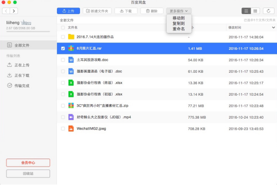 由于我之前使用Windows系統(tǒng)時(shí)也用百度網(wǎng)盤(pán)管理照片,所以帳號(hào)不用重新注冊(cè),直接登錄即可。打開(kāi)界面后我發(fā)現(xiàn),之前通過(guò)任何端口上傳到百度網(wǎng)盤(pán)的資料都會(huì)有所顯示,只需要在目標(biāo)文件之前打鉤,然后點(diǎn)擊下載便可將選中文件下載到Mac上。整個(gè)下載過(guò)程非常穩(wěn)定和順暢,并沒(méi)有卡頓和中途重新下載的情況出現(xiàn)。