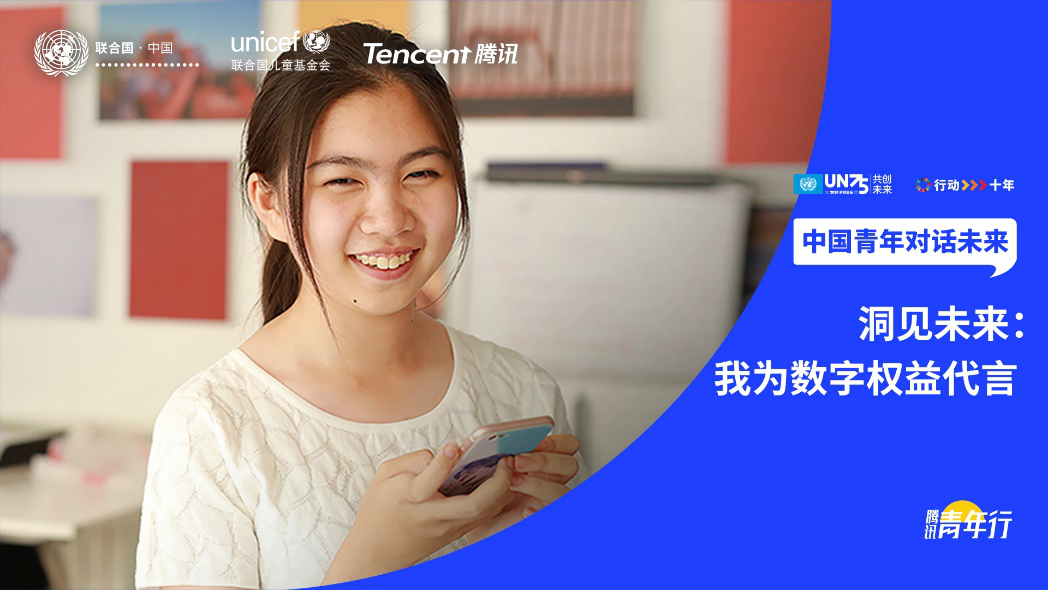 2020年7月12日,來自中國的青年代表通過互聯(lián)網(wǎng)齊聚一堂,參與聯(lián)合國兒童基金會(huì)駐華辦事處和騰訊集團(tuán)共同主辦的“洞見未來:我為數(shù)字權(quán)益代言”線上對(duì)話活動(dòng),分享他們對(duì)確保青少年安全上網(wǎng)、健康用網(wǎng)、科技賦能的解決方案。這場對(duì)話互動(dòng)持續(xù)約90分鐘,是聯(lián)合國駐華系統(tǒng)與騰訊為紀(jì)念聯(lián)合國成立75周年而共同開展的“中國青年對(duì)話未來”系列活動(dòng)之一。