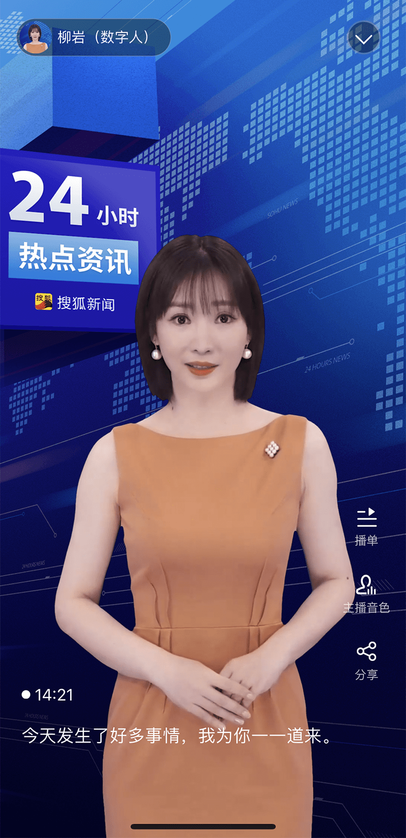 搜狐新聞客戶端24小時明星“數字人”上線 多種方言播新聞更接地氣