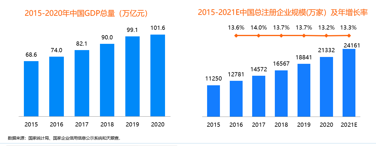 近年來,我國總注冊企業持續穩定增長,2020年總注冊企業達到2.13億家,而2015年是1.125億,5年內中國累計注冊企業增加了1億。差旅是企業的剛需。
