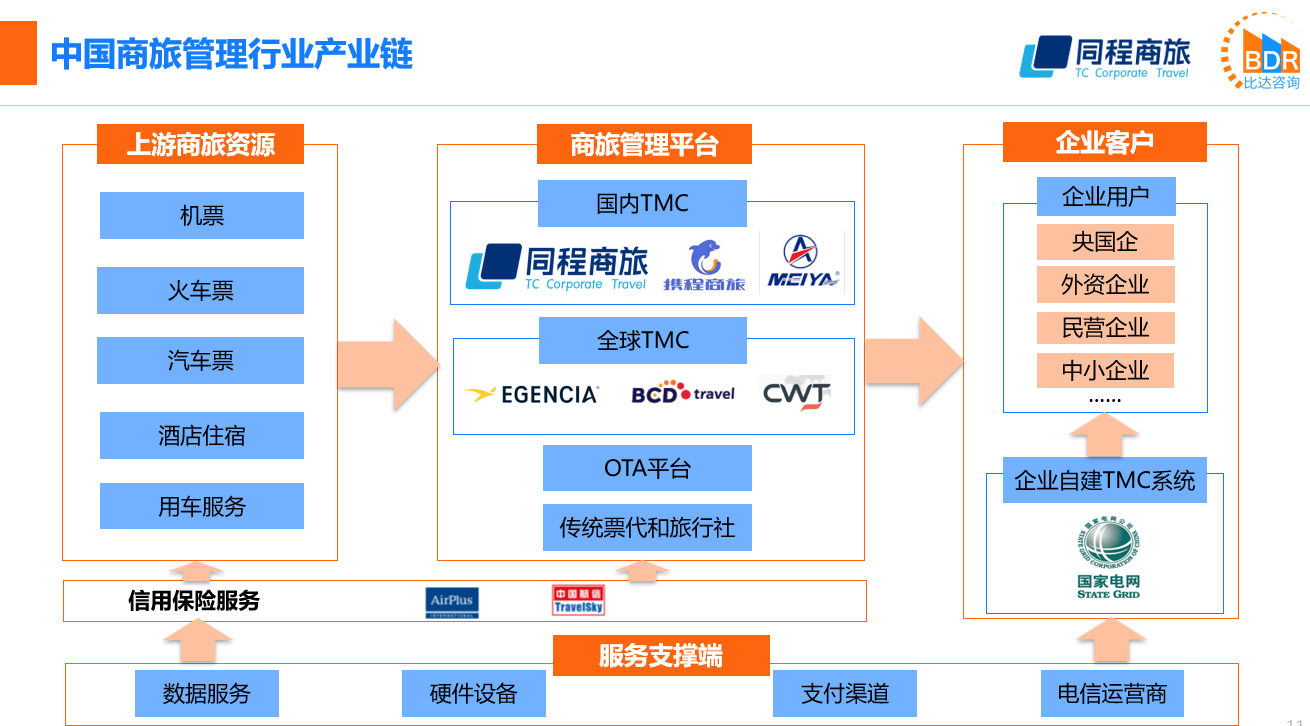 中國商旅管理行業參與者眾多,市場參與者眾多,但較為分散,包括TMC、機票代理商、航司酒店直銷、費控/OA系統的供應商等。中國商旅管理市場隨著行業進入者的增加,商旅管理市場將進一步變大。