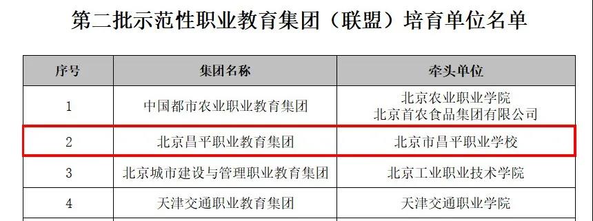 近日,教育部職業教育與成人教育司公布了第二批示范性職業教育集團(聯盟)培育單位名單,北京昌平職業教育集團被確定為全國示范性職業教育集團(聯盟)培育單位。