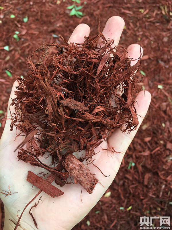 水上公園綠化隊(duì)副隊(duì)長王巍煒介紹說,“有機(jī)覆蓋物”技術(shù)源自美國,是一種新型節(jié)能環(huán)保材料。主要原料是天然植物的綠化廢棄物如樹皮等經(jīng)過發(fā)酵形成。它不僅可以通過覆蓋裸土減少塵源,其粗糙表面還能吸附空氣中的塵埃顆粒,大大改善局部環(huán)境的空氣質(zhì)量,從而緩解城市霧霾現(xiàn)象!斑^去一年里,我們在部分樹穴下鋪設(shè)這種有機(jī)覆蓋物,通過使用和觀測,我們發(fā)現(xiàn),首先景觀性比較好,主打顏色是紅色,在綠意盎然的公園景觀中起到提亮作用,讓游客視覺上達(dá)到平衡。其次,這種材料在雨水浸泡下,不會四處亂溢,沉浮性比較好,損耗量也不會大;由于材料間具有黏連性,大風(fēng)天氣中也不會被吹的四處亂跑!蓖跷樥f。