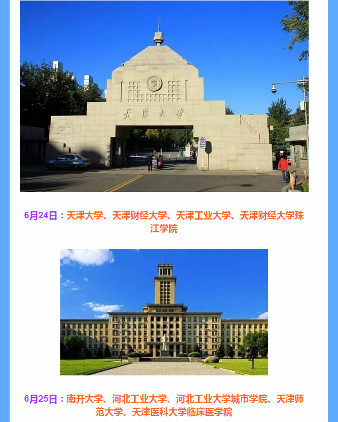 二、網上咨詢:6月24日至28日,坐落天津市各高等學校將通過學校網站解答考生及家長的有關問題。