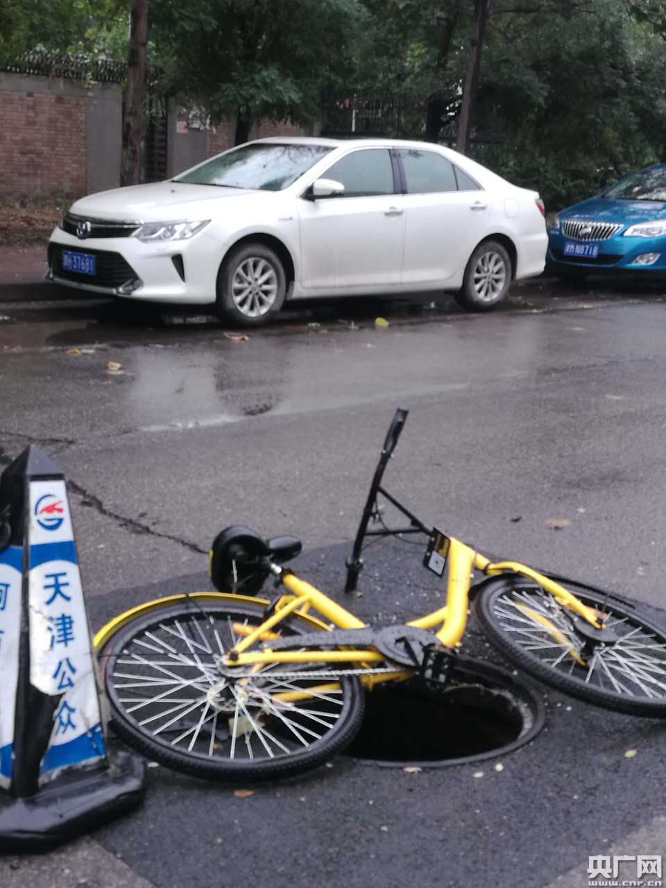 央廣網天津6月22日消息,近日,有網友爆料共享單車又添新技能,警示市民井蓋丟失。共享單車雖然顏色鮮艷,但是并不代表可以多方使用,陰雨天為保證行人、汽車出行,還需要有關部門盡職盡能,保障道路安全。