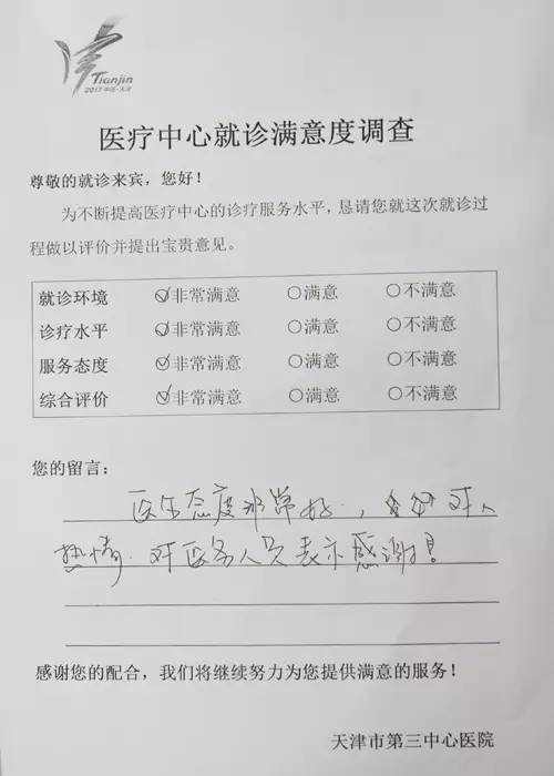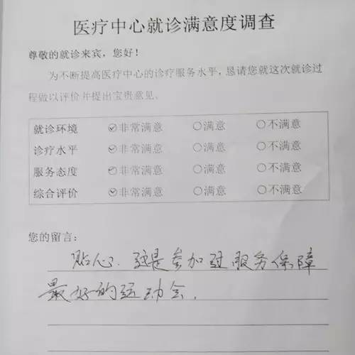 “就診滿意度調查”滿意率100% 暖心服務受稱贊
