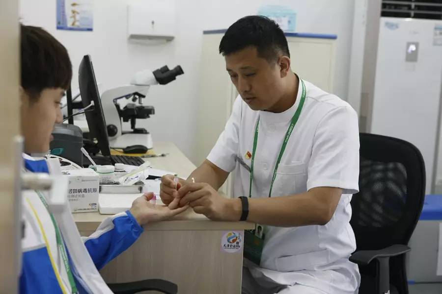 這些駐守醫務人員的背后則是全院醫務人員的全力支撐。曾有一位患皮膚病的運動員到醫療站就醫,由于接診醫生王雪并非?漆t生一時間拿不準用藥,只好在晚上九點多,發信息向醫院皮膚科主任邊鵲橋“求助”,邊主任二話沒說讓王雪發來患者照片,并做了詳細的用藥指導。之后兩天,王雪隨訪這名運動員,他非常開心地告訴王雪病情已經有了好轉,他的教練員對天津醫療服務非常滿意。