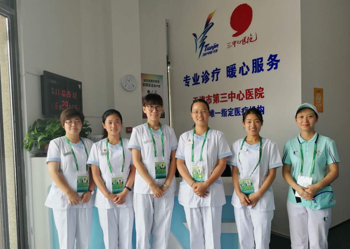 天津市第三中心醫院按照天津市委市政府、市衛計委、全運會組委會和村委會的指示精神,將全運會醫療保障工作納入醫院工作重點,全面動員,全員參與。充分發揮綜合性醫院學科齊全、技術力量雄厚、信息化基礎好、人員設備便于集中調配的優勢,合理規劃全運村三個醫療服務中心的科室設置,運動員醫療服務中心不僅外科、內科、婦科、耳鼻喉科、眼科、口腔科、檢驗科一應俱全,還配備治療室、搶救室、藥房,可提供B超、心電圖、三大常規檢查。專業化的診療,規范化的流程,暖心的服務,定期的患者回訪,綠色通道無縫對接轉運,醫院前后方聯動為全運村運動員、技術官員、媒體記者提供24小時全方位醫療服務。